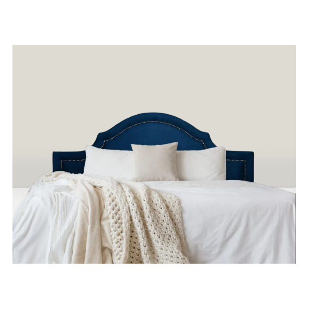 Cabeceira Casal Curva Luxo Estofada 140x60 - Suede Azul Marinho - Tachas Fume azul marinho