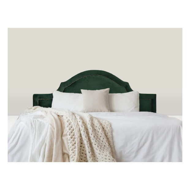 Cabeceira Casal Curva Luxo Estofada com Tachas 140x60 - Suede Verde Esmeralda - Tachas Fume verde esmeralda