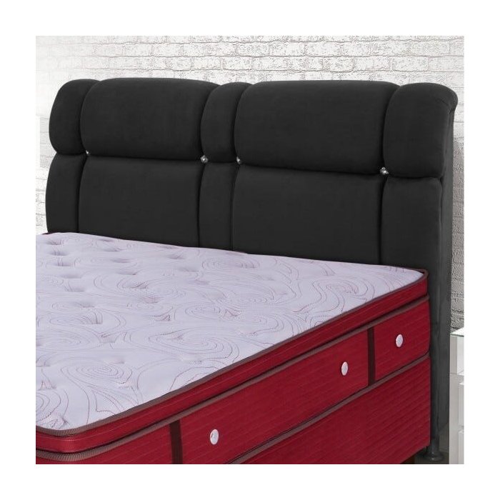 Cabeceira Casal Estofada Duquesa Simbal Suede Liso Preto
