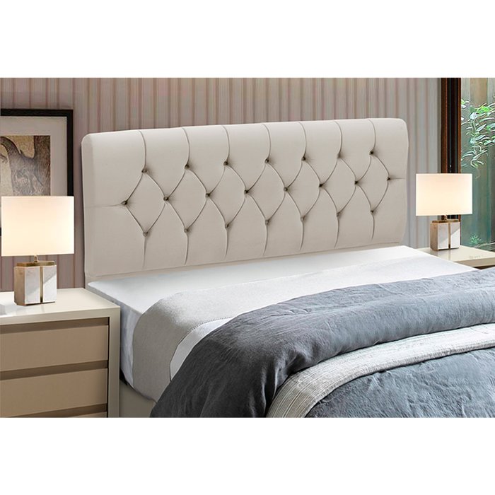 Cabeceira Casal Estofada Madeira Cama Box Madri:bege Bege