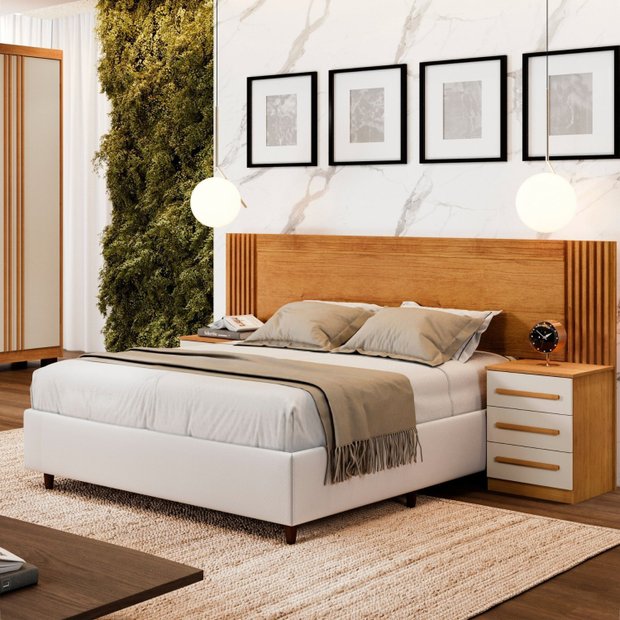 A Cabeceira Valência é um móvel produzido inteiramente em chapa de 15mm, com um elegante painel ripado que confere charme e personalidade ao ambiente. Composta por 2 mesas de cabeceira e 6 gavetas espaçosas, equipadas com corrediças telescópicas, esta cabeceira oferece amplo espaço de armazenamento para atender às suas necessidades do dia a dia. Além disso, possui montagem dupla para colchões de 140cm e 160cm, proporcionando versatilidade para diferentes tamanhos de cama. Um dos seus diferenciais é a não necessidade de parafusar na parede, o que oferece flexibilidade na hora de organizar o ambiente. Com a Cabeceira Valência, você terá um móvel funcional e elegante para completar o seu quarto.