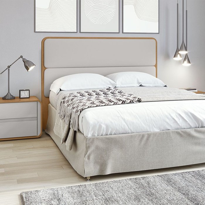 Cabeceira Casal Loop Amendoa Clean Tecido Corano Bege Lopas