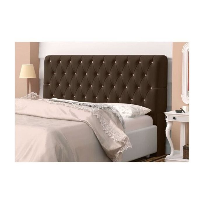Cabeceira Casal Queen 160 cm Para Cama Box Lady Suede Marrom Botões Strass - SA Móveis