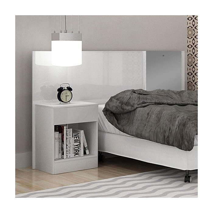 Cabeceira Casal/Queen Extensível com Espelho 1 Mesa de Apoio Valore Novo Horizonte