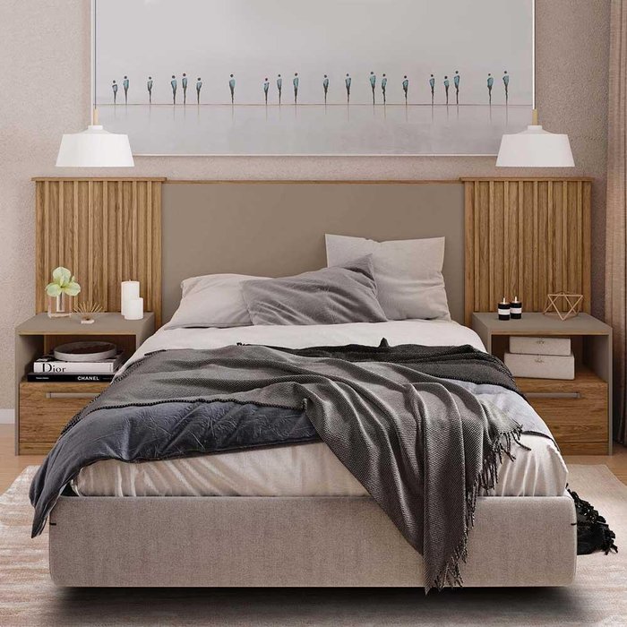 Cabeceira Casal Ripada Com Mesa De Cabeceiras Lucius Buriti Fendi