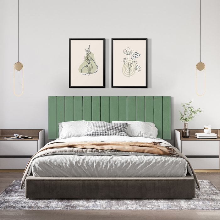 Cabeceira Casal Ripada Palito para Quarto - 140 Cm - Verde Menta Suede