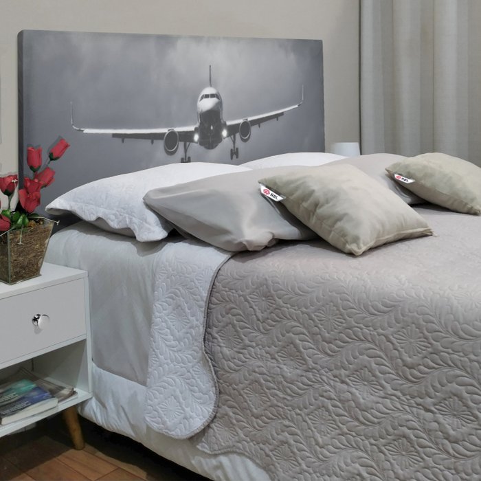 Cabeceira Casal Suede Estampado Avião Painel Cama Box 140 X 60 cinza