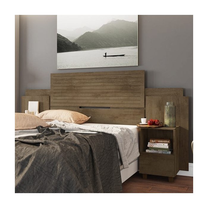 Cabeceira com Mesa de Cabeceira Ajustável Suiça Freijó