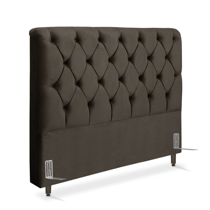 Cabeceira de Cama Box Casal 138 Cm Marselha Larhome Suede Veludo Marrom Escuro