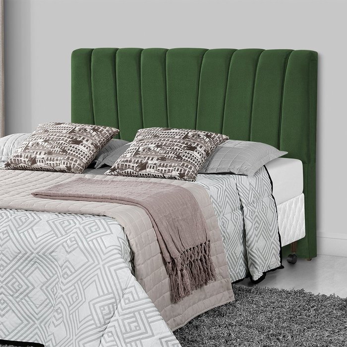 Cabeceira de Cama Box Casal Queen Estofada Americana Premium 160cm Veludo Verde