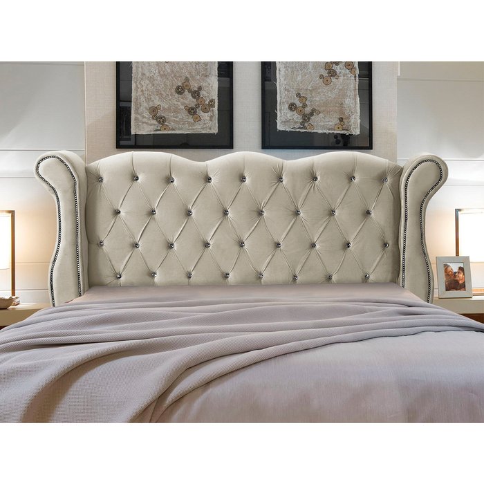 Cabeceira de Cama Box Madeira Estofada Luxo Casal Safira:bege Bege