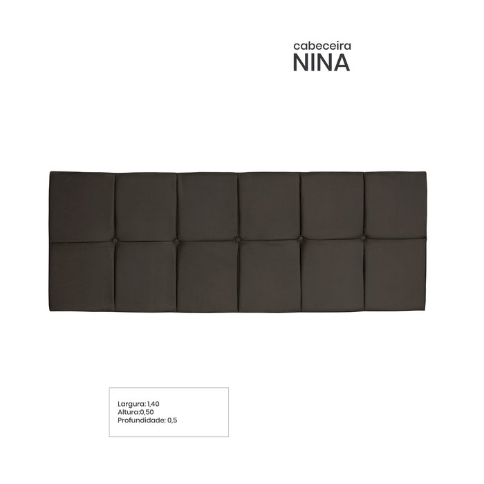 CABECEIRA PAINEL 195 NINA, IDEAL PARA DEIXAR O SEU AMBIENTE COM O DESIGN AINDA MAIS MODERNO E ACONCHEGANTE!Estrutura em madeira de eucaliptoRevestimento em Suede Liso ou CorinoEstofado com espuma D-13Recomendada para cama box de até 65 cm de altura02 pés em poliuretano (plástico)Possui 4 conectores (suporte) para fixação na paredeNão acompanha kit frameAcompanha manual de montagemEste móvel chegará em sua casa separado em 01 volumeCAMA BOX NÃO ACOMPANHA O PRODUTODICAS:Aspirar ou usar um pano seco para retirar o pó, não aplicar produtos abrasivos.A tonalidade da cor do produto pode variar de acordo com a sua tela, a iluminação do ambiente ou sua percepção visual.Acompanha manual e todos os acessórios para montagem.Garantia de 03 meses para eventuais defeitos de fabricação.DIMENSÕES:Altura: 50 cmLargura: 140 cmProfundidade: 5 cmRecomendada para cama box de até 65cm de alturaINCLUSO: 01 CABECEIRA PAINEL 140INFORMAÇÕES DE TRANSPORTE:Peso Total: 25 kgVolume(s): 1ATENÇÃO! OBSERVAÇÕES IMPORTANTES:Imagens Ilustrativas, não acompanham decorações. A montagem é por responsabilidade do cliente. As cores do produto podem variar de acordo com o seu monitor. Não nos responsabilizamos por subir escadas e elevadores, eventuais despesas são do cliente.
