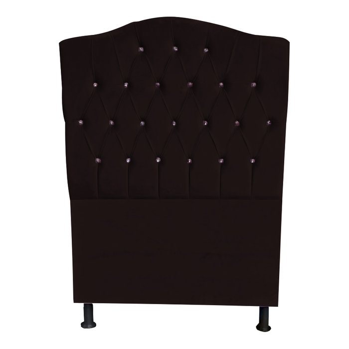 Cabeceira de Cama Box Princesa Solteiro 90 Cm Botão Strass Suede Marrom Eli Móveis