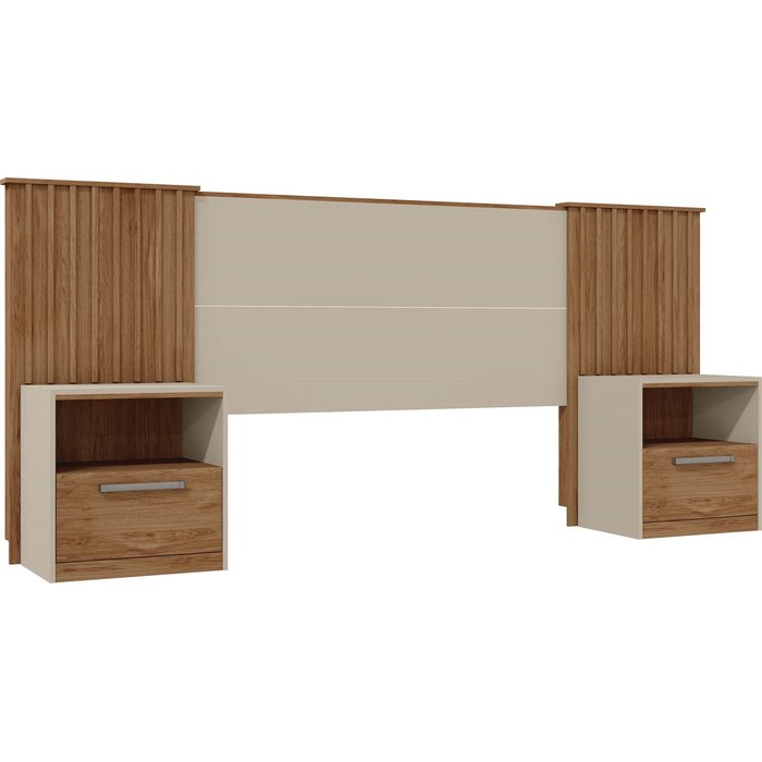Cabeceira De Cama Extensível 2 Mesas com Gaveta Ripado 140/193 Lucius Buriti/Off White