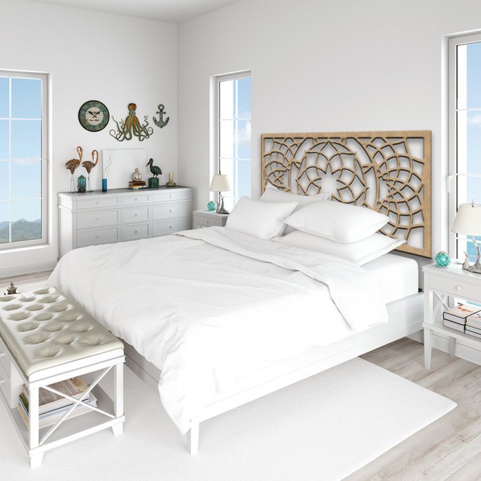A Cabeceira Mandala Estelar é uma cabeceira de cama linda e exclusiva. Esta cabeceira mandala ganha formas e profundidade harmoniosas, se tornando leve e sofisticada com suas linhas. A essência mística desta cabeceira é a sorte. A cabeceira é vazada, de forma que é possível ver a cor da parede atrás da cabeceira. É um trabalho rico em detalhes, que transforma o ambiente com originalidade, de forma linda e aconchegante.