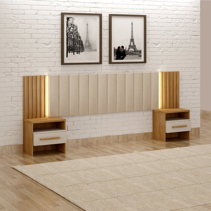 Cabeceira de Casal com 2 Mesas de Cabeceira e Led Los Angelis