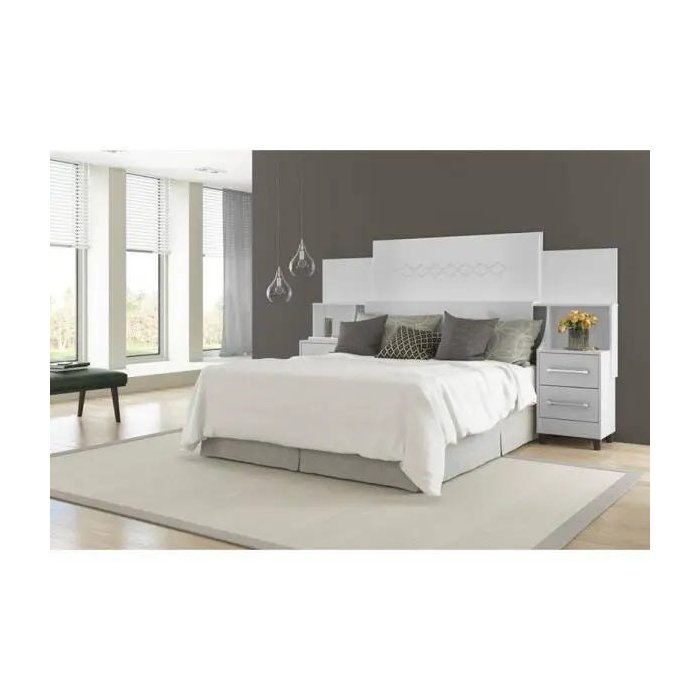 Cabeceira de Casal Síria com Mesa de Apoio Branca - Rv Móveis
