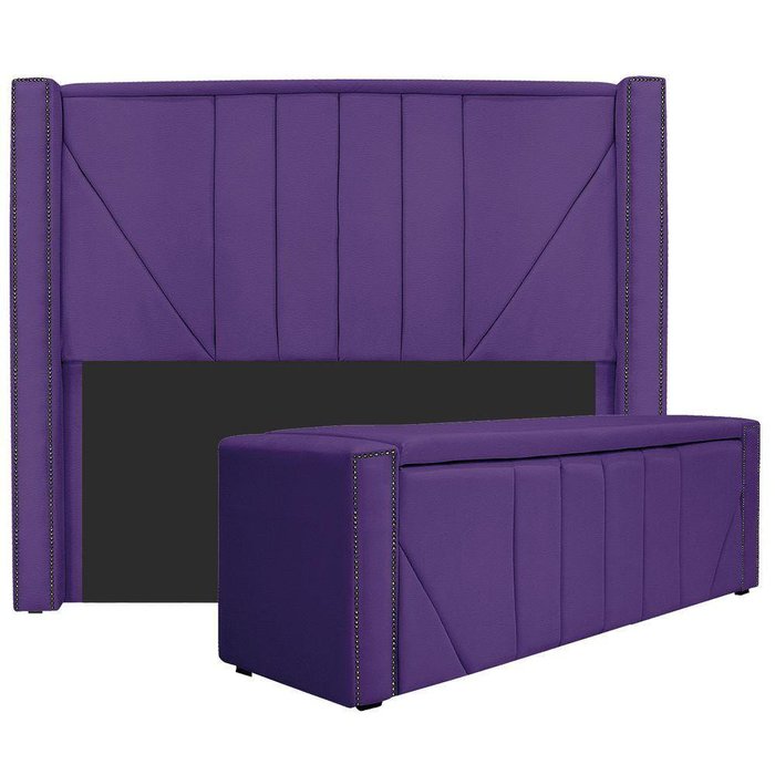 Kit Cabeceira E Calçadeira Baú King Minsk P02 195 Cm Para Cama Box Corano - Adj Decor Cor Roxo