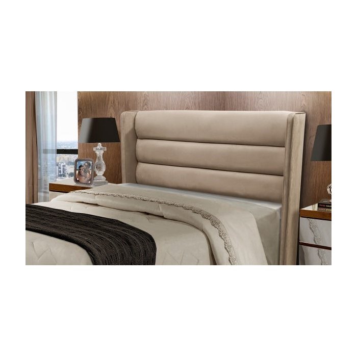 Cabeceira Estofada BMW para Cama Box King 198 cm Suede Bege para Quarto - Fratello