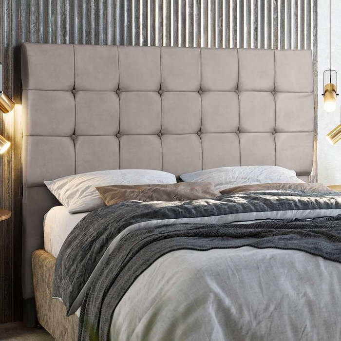 Cabeceira Estofada Box Casal Dubai 1,40cm Vamfer Estofados Suede Cinza Claro