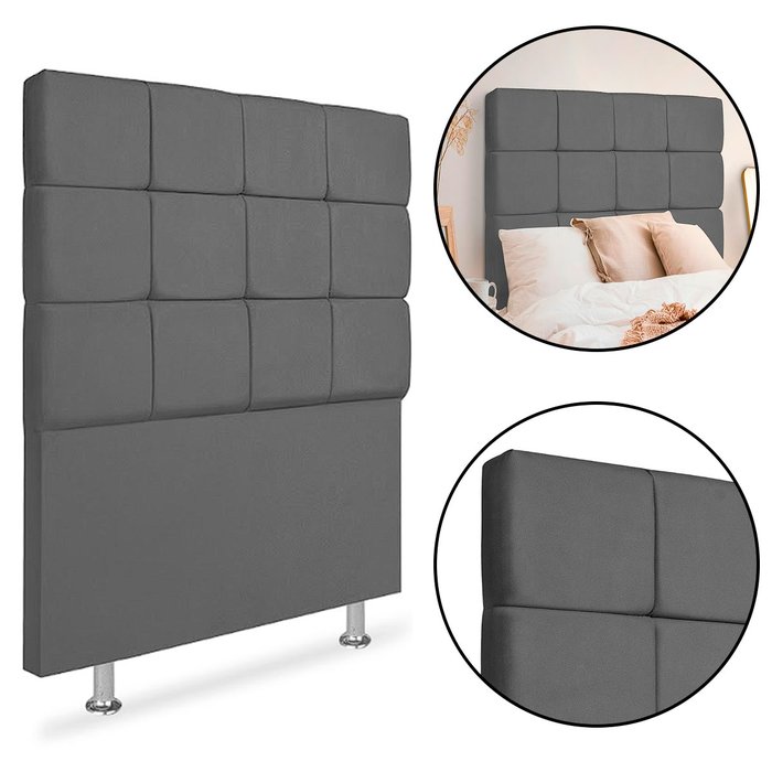Cabeceira Estofada Cama Box Solteiro 90cm Julia Suede Cinza cinza