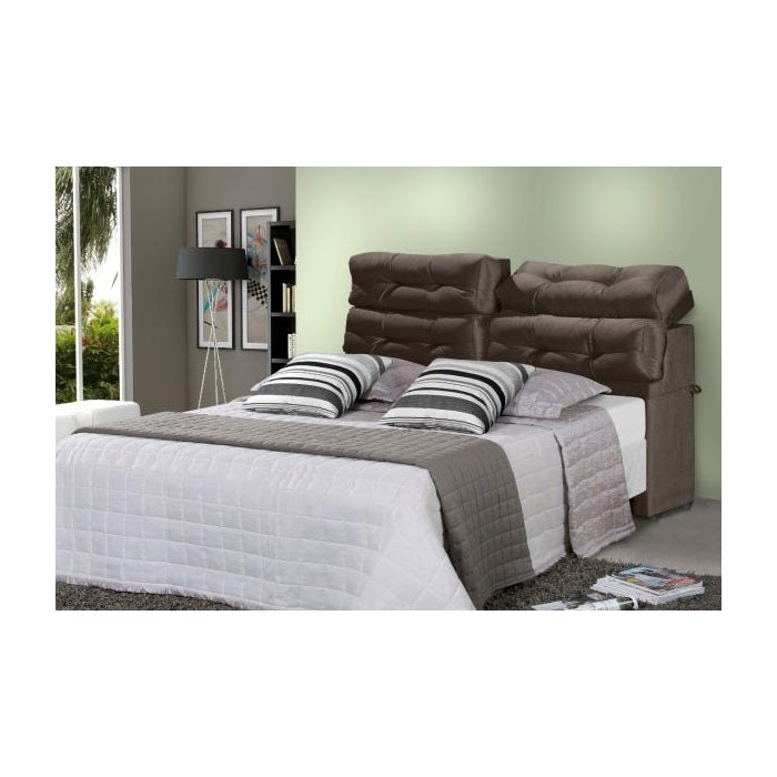 Cabeceira estofada com baú interno para box casal Eva 1,40m: Marrom
