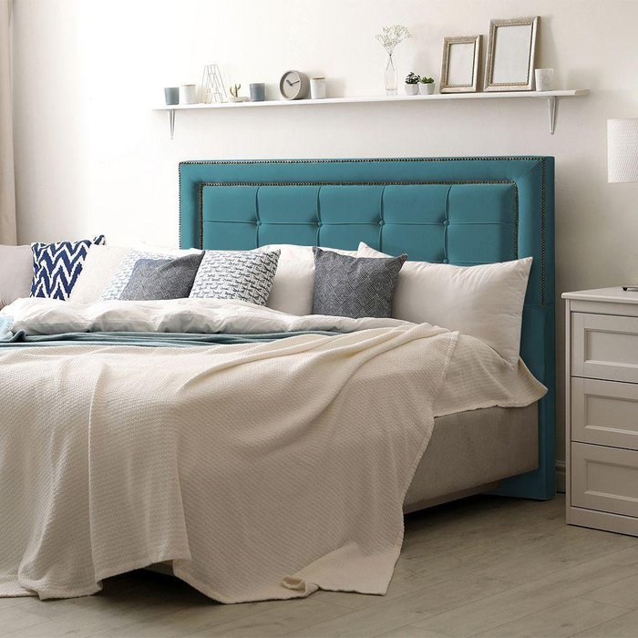 Cabeceira Estofada Grécia 195cm Veludo Azul - Cor: Azul