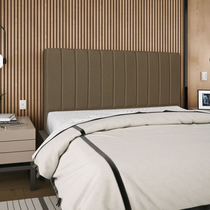 Cabeceira Estofada King Carla 195cm Linho Marrom