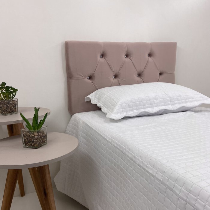 Cabeceira Estofada para Camas de Solteiro 90x50 Cor Rosa Nude com Botões de Cristal - Alto Conforto