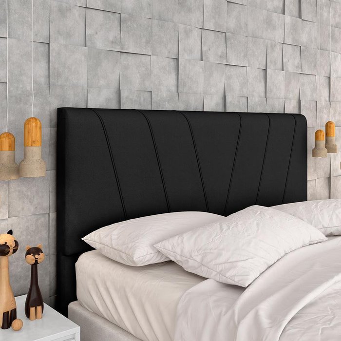 Cabeceira Estofada Queen Bragança Suede - Móveis Arapongas Preto