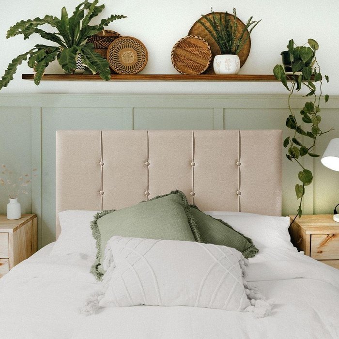 Cabeceira Estofada Roma 140Cm Linho Bege - Cor: Bege