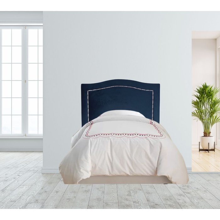 Cabeceira Estofada Solteiro Onda |Veludo Azul Marinho Azul Marinho