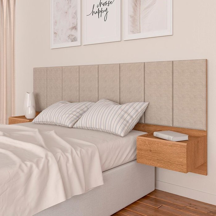 Cabeceira Estofada Suspensa Cama Casal Bulgária Carvalho/Bege