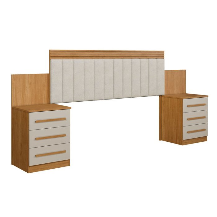 Cabeceira Extensiva Estofada com 2 Mesas de Cabeceira Império - Benetil CINAMOMO OFF