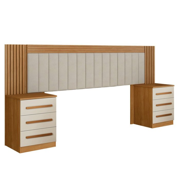 Cabeceira Extensiva Estofada Ripada com 2 Mesas de Cabeceira Valência - Benetil CINAMOMO OFF