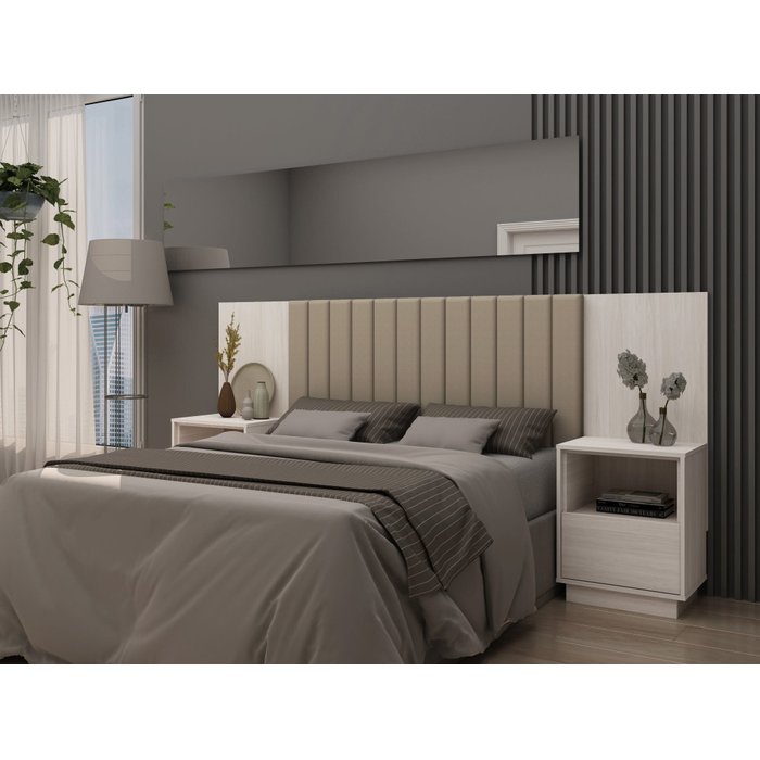 Cabeceira Extensível (casal ou Queen) Liz com Mesa de Apoio e Capitone - Off White Robel Móveis Cabe