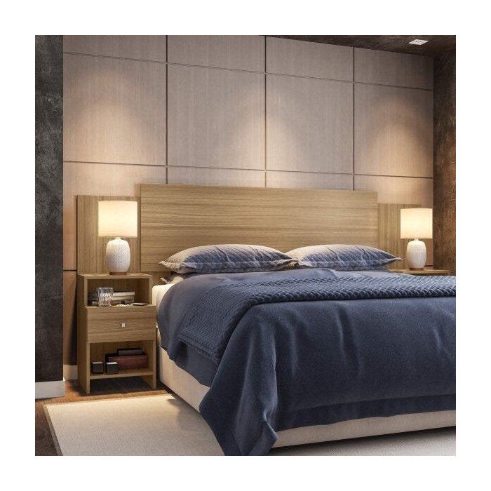 Cabeceira Extensível Casal/Queen 2 Mesas de Apoio Maceió Poliman Móveis Carvalho