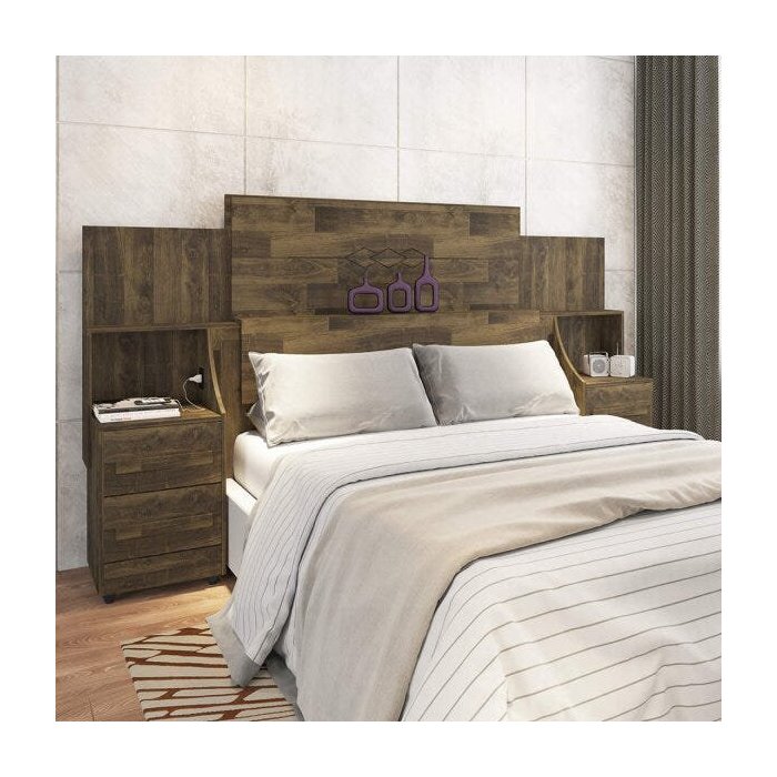 Cabeceira Extensível com 2 Mesas de Cabeceira 4 Gavetas e 2 Tomadas Síria RV Móveis Amadeirado