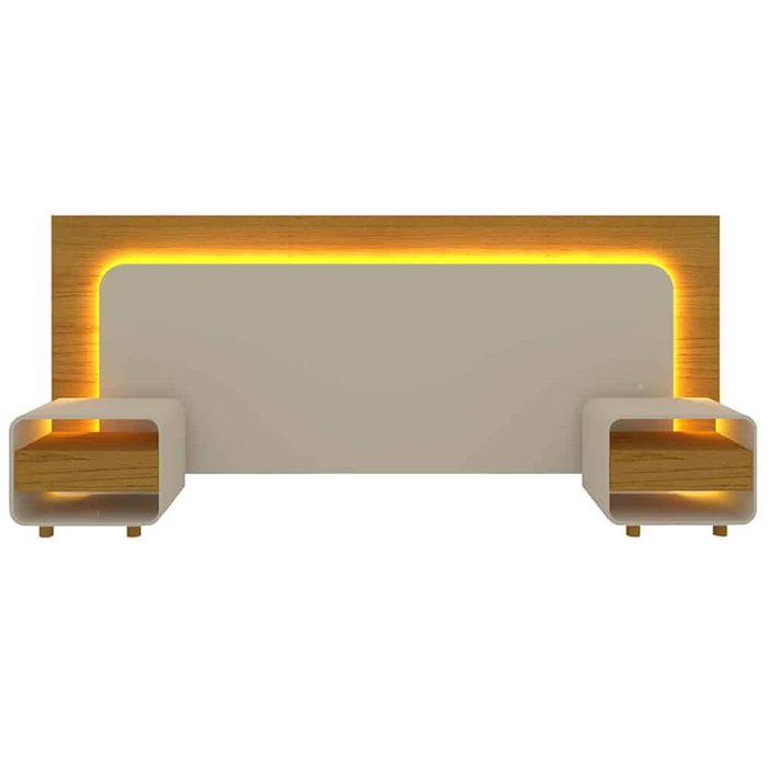 Cabeceira Innova Casal Queen King com 2 Mesas de Cabeceira e Led Gelius Cor Naturale Off White Off White