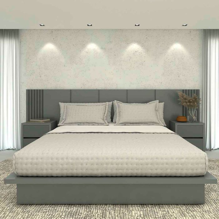 Cabeceira King 3,50m e 2 Mesas de Cabeceira Mdf sob Medida Cor:cinza Sagrado