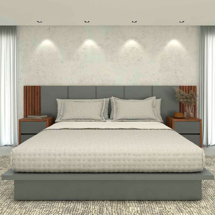 Cabeceira King 3,50m e 2 Mesas de Cabeceira Mdf sob Medida Cor:nogueira Cadiz com Cinza Sagrado