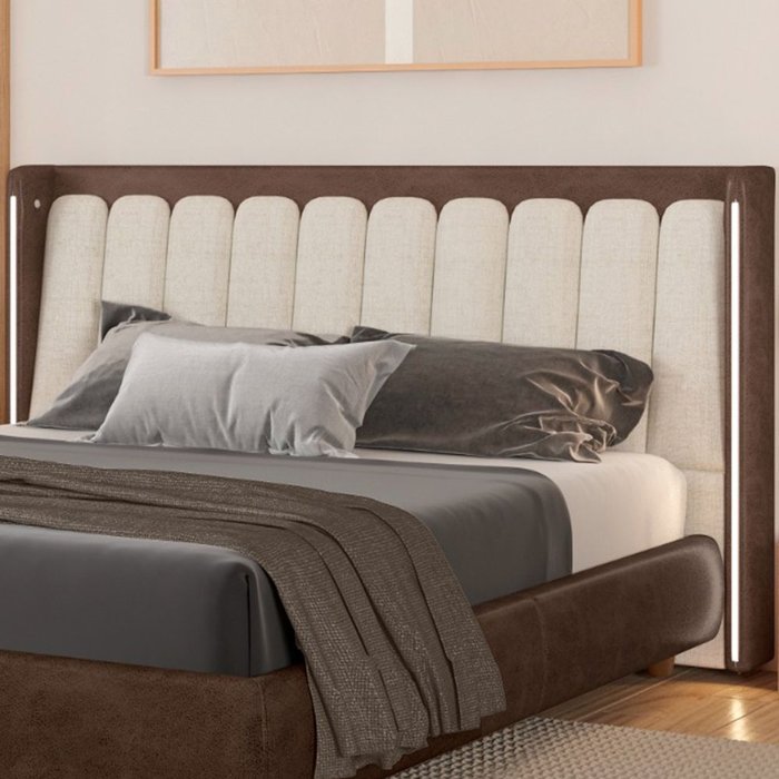 Cabeceira King com Led Yeon Nobuck Marrom / Linho Off White - Sallar Home