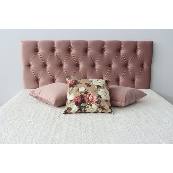 Cabeceira King em Veludo Liso na Cor Rosa Nude 1,95m X 60cm com Botões na Mesma Cor que o Tecido