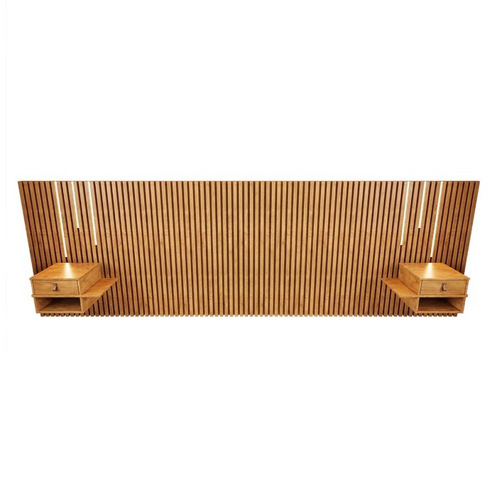 Cabeceira King Ripada Quarto Manila 2 Mesas e Led Nature