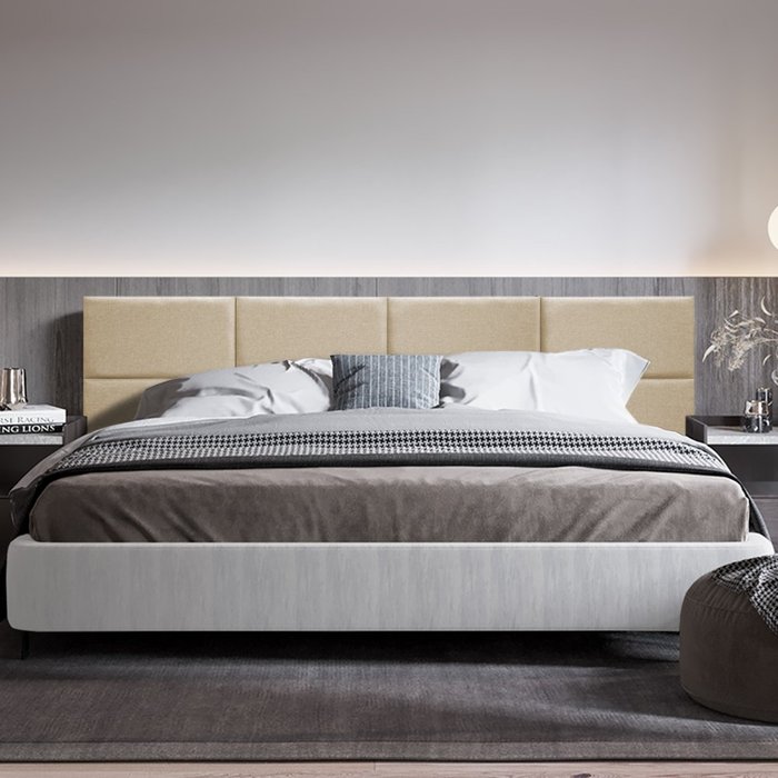 Cabeceira Luxo Madrid King 8 Blocos Linho Bege Bege