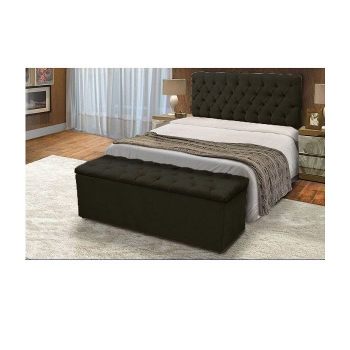 Cabeceira Mais Calçadeira Baú Casal 140cm Para Cama Box Sofia Suede Preto - DS Móveis Preto