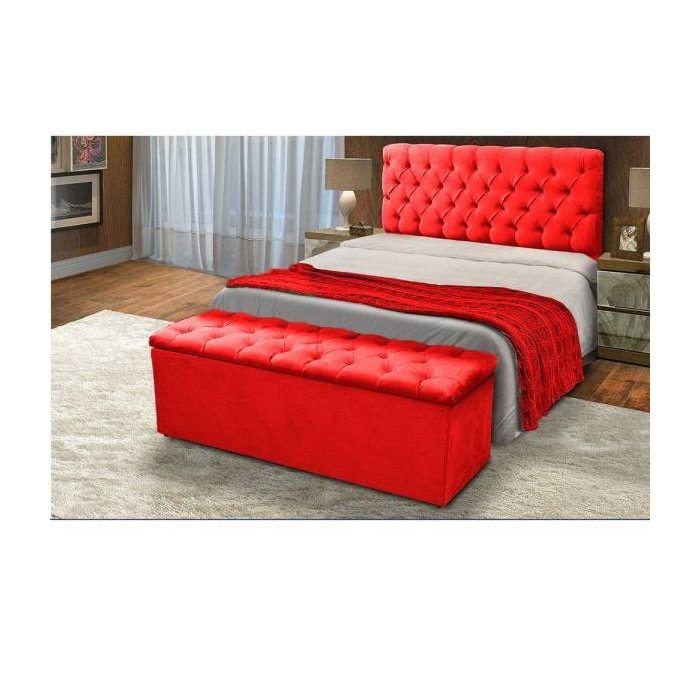 Cabeceira Mais Calçadeira Baú Casal 140cm Para Cama Box Sofia Suede Vermelho - DS Móveis Vermelho