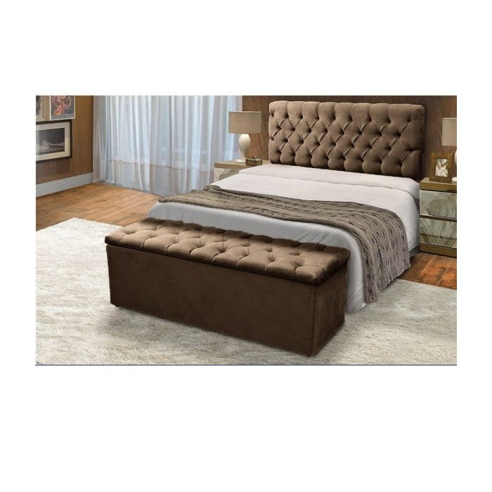 Cabeceira Mais Calçadeira Baú Casal Queen 160cm Para Cama Box Sofia Suede Marrom