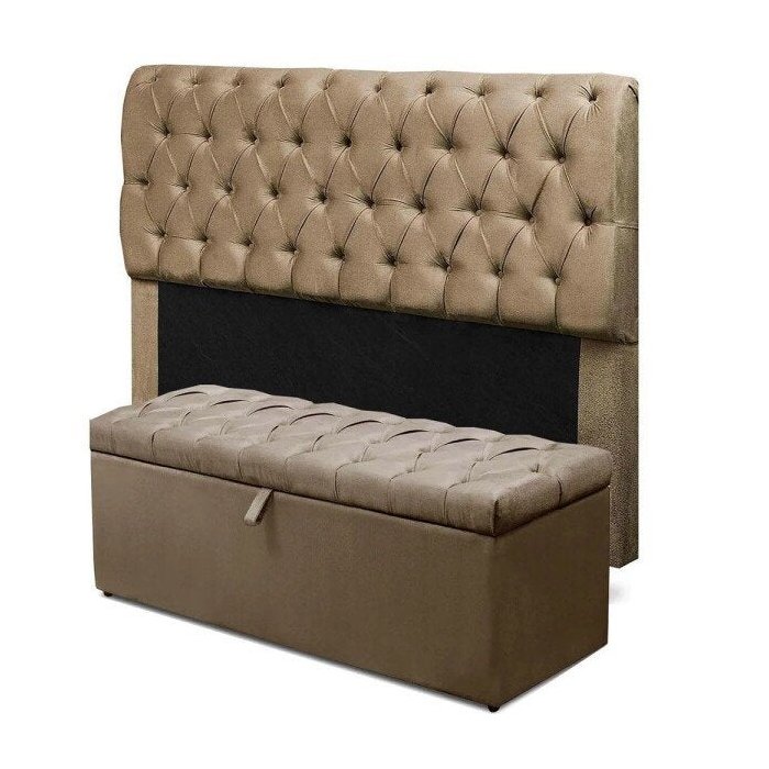Cabeceira Mais Calçadeira Baú Solteiro 90cm Para Cama Box Paris Suede Capuccino - DS Móveis