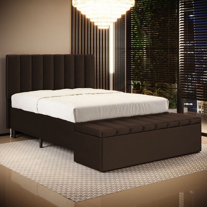 Cabeceira Nashira e Calçadeira Baú Navi 160 para Cama Queen N-027 Veludo Marrom Chocolate Aradecor